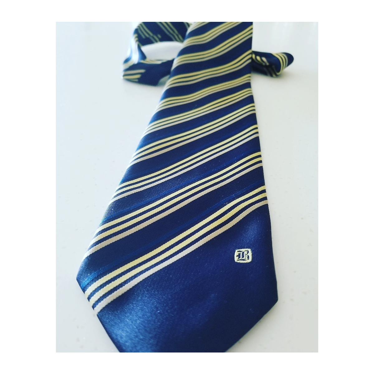 The tie is made in Australia and consist of a blue and gold colour scheme.